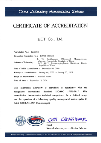 KOLAS 韩文认可证书